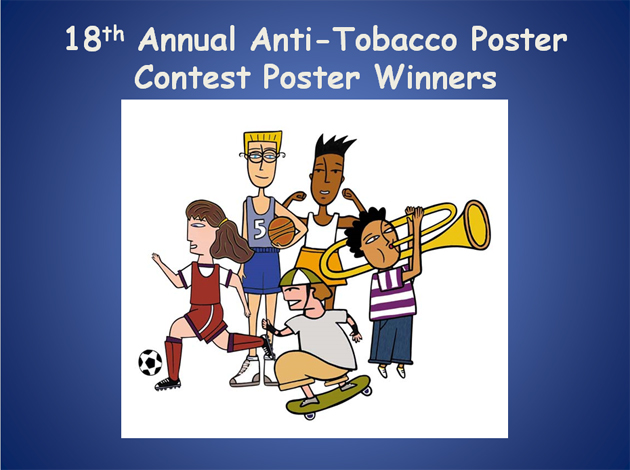 18th Annual Anti-Tobacco Poster Contest Winners Grades 1 and 2 - "Tobacco is Bad for Your Body" Aayda Deshmukh - Grade 1 - John F. Kennedy Elementary School, Canton Emma Erickson - Grade 2 - Frederick C. Murphy School, Weymouth Katherine McCarthy - Grade 2 - Academy Avenue School, Weymouth Gianna Rocchio - Grade 2 - Frederick C. Murphy School, Weymouth Grades 3 and 4 - "Tobacco Affects Other People" Zoe Langlois - Leicester Memorial School, Leicester Grade 3 - Wellington Elementary School, Belmont Adia Bond - Grade 4 - George Keverian School, Everett Tessa Curtis - Grade 4 - Old Post Elementary School, E. Walpole Grades 5 and 6 - "Why I Won't Start Smoking" 5th Grade Student - Wellington Elementary School, Belmont Arieanna Moran - Grade 5 - Seton Academy for Girls, Fall River Gabriella Finocchio - Grade 6 - Cohasset Middle School, Cohasset Shrirang Sane - Grade 6 - Reliant Medical Group, Marlborough